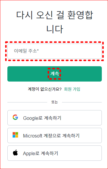 이메일 주소로 로그인 합니다.