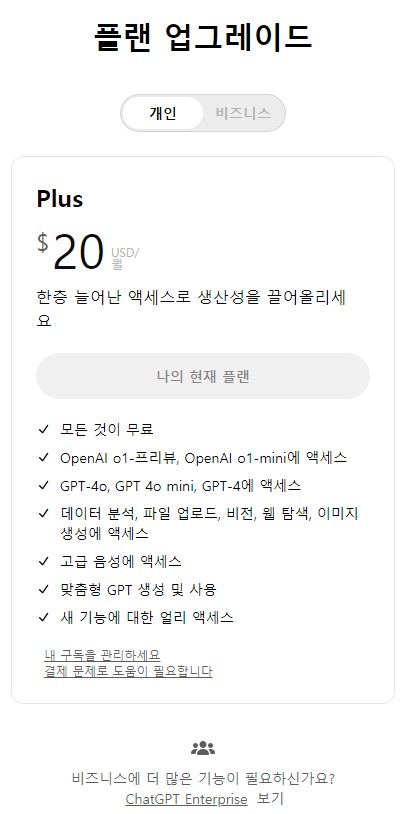 2024.10.08 - [IT] - ChatGPT의 무료 버전과 유료 ChatGPT Plus 구독의 차이점