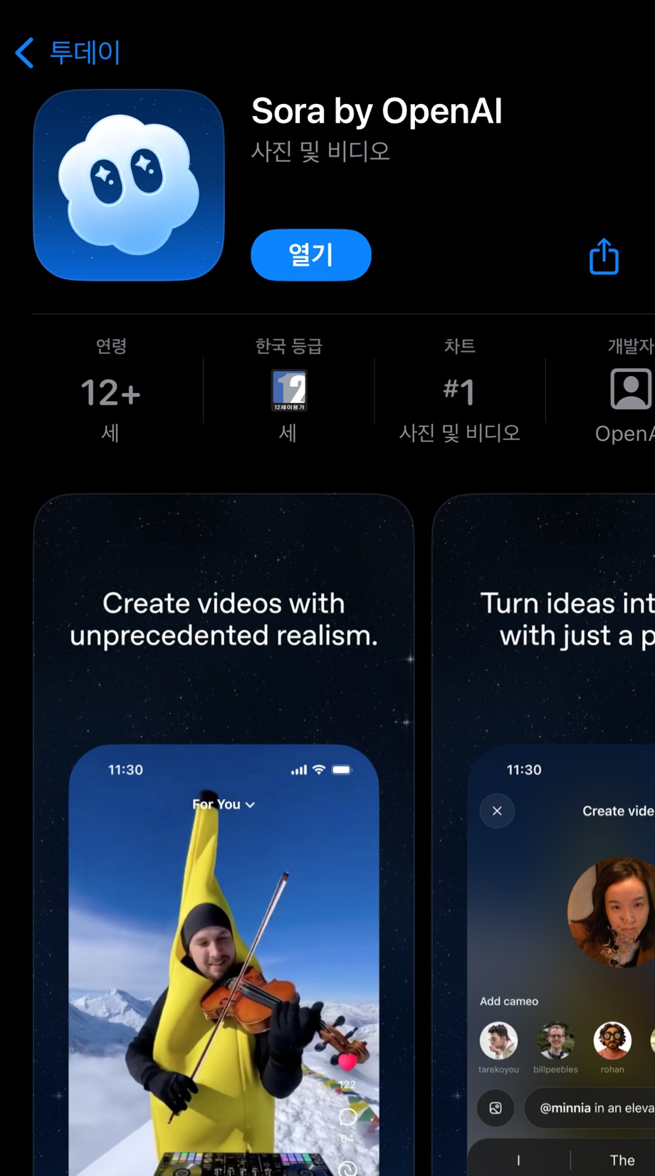 Sora 2를 사용하려면 App Store에서 Sora by OpenAI 어플을 다운로드해야 합니다.